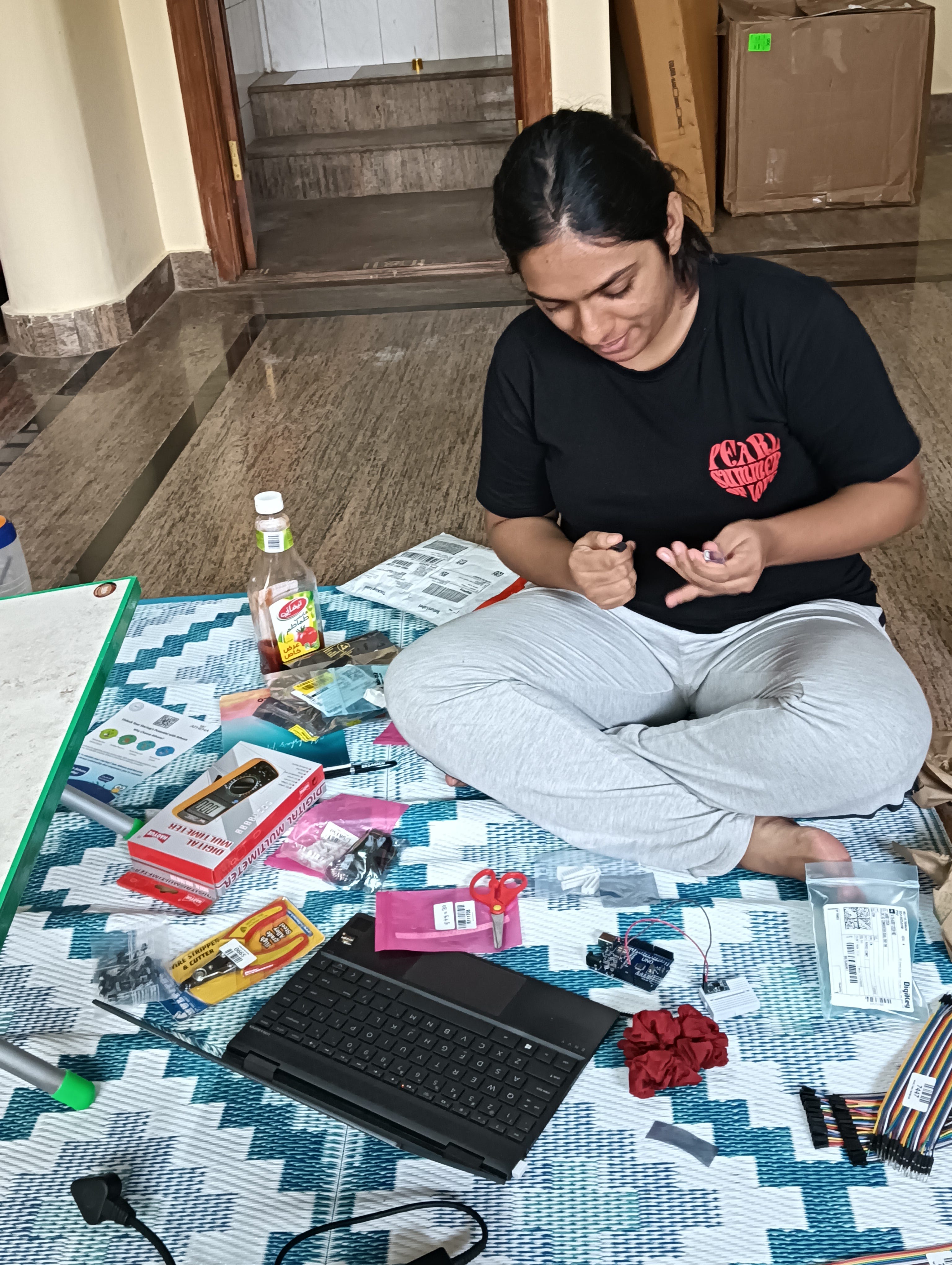 Akanksha and I were batch and hostel mates at BITS. We have spent countless hours traveling (getting lost and finding our way back) together, discussing books, people, ideas and life at large. We co-built the Accessible Labs project to empower visually impaired students to independently do science experiments (the project is now officially under the CSIS department at BITS Goa with a full-time PhD student leading it after we graduated); Akanksha has seen me (and had my back) on some of my worst days and it’s hard not to trust her to sort things, and sort them well. I am so grateful that she has decided to take the leap and build the future of data storage and computing.Image Description: Akanksha tinkering around with some electronic components